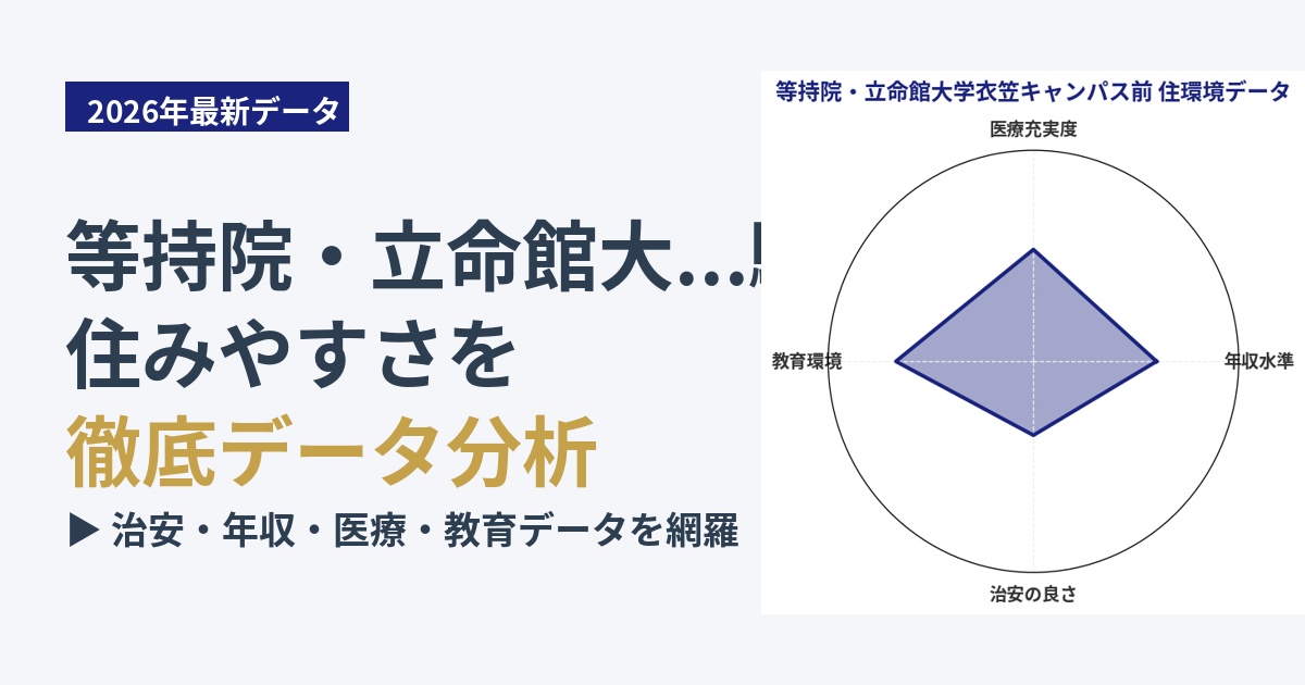 等持院・立命館大学衣笠キャンパス前エリアは、治安スコア35点という数値や、学生街特有の環境を考慮すると、ファミリー層が安心して暮らすためには、いくつかの注意点があります。夜間の騒音や、一部の暗い夜道は、小さなお子様がいる家庭にとっては懸念材料となるかもしれません。不審者情報や軽犯罪の発生傾向も、子育て世帯にとっては気になる点です。地域全体で防犯意識を高めることや、自治体による見守り活動の有無を確認することが、安心感を高める上で重要となります。