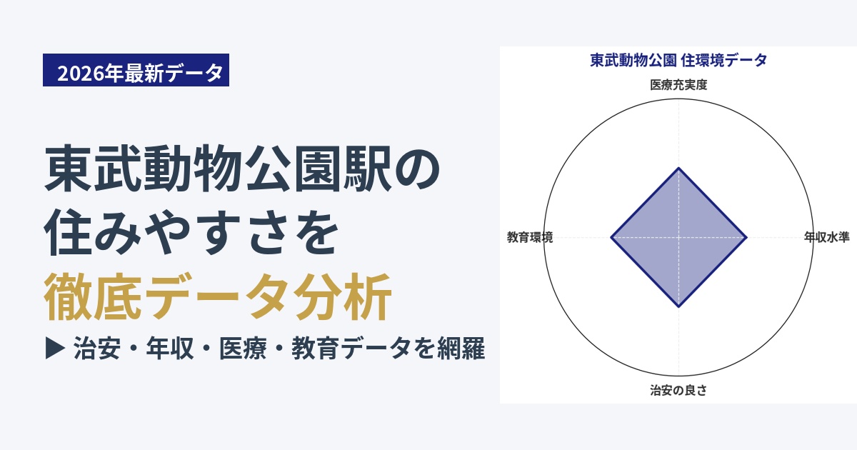 住民層は、子育て世代のファミリー層を中心に、幅広い年代の方が暮らしており、全体的に落ち着いた雰囲気です。大規模な商業施設や繁華街はありませんが、その分、静かで治安が良いのが特徴です。自然も豊かで、駅名の由来でもある「東武動物公園」は、動物園、遊園地、プール(夏季限定)が一体となった広大な敷地を持ち、休日のレジャーには事欠きません。日常の喧騒から離れ、穏やかな生活を送りたい方には魅力的なエリアと言えます。