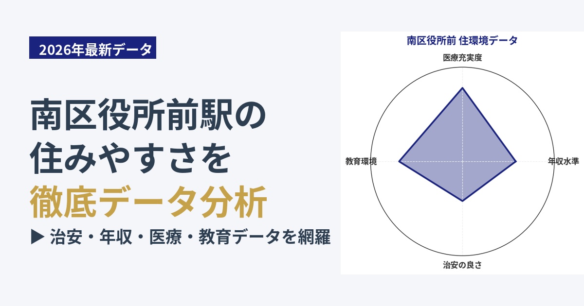 南区役所前エリアは、公立小学校や公立中学校が近くにあり、子育て世帯にとっては通学の面で安心感があります。日中は区役所や学校関係者、地域住民の往来があり、比較的活気があります。しかし、治安スコアが示すように、夜間の一人歩きや子供だけで行動する際には、保護者の注意が必要です。特に、夜間の公園利用や裏道の通行は避けるなど、防犯意識を持つことが推奨されます。全体としては、日中の生活は安心感がありますが、夜間の防犯対策はしっかりと行う必要があります。
