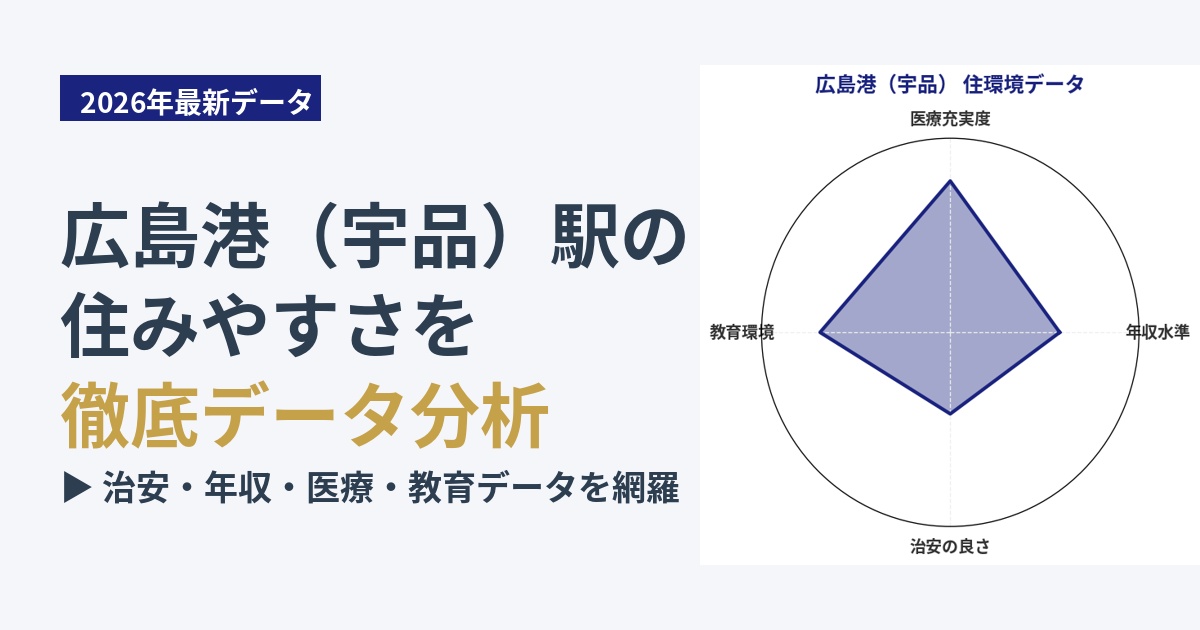 広島港(宇品)は、広島市の南部に位置し、瀬戸内海に面した港町です。データ分析で示される「スタンダード」という特徴は、このエリアが持つ、派手さはないものの、日常生活に必要な機能がバランス良く揃った落ち着いた住環境をよく表しています。電停を降りると、広々とした空間が広がり、目の前には「広島港(宇品)旅客ターミナル」が見えます。ここからは四国方面へのフェリーが発着し、旅情を感じさせる一方で、地域住民の生活動線の一部でもあります。周辺には「ゆめタウン広島」のような大型商業施設があり、日用品から衣料品まで一通り揃うため、遠出せずとも生活が完結する利便性があります。港に隣接する「広島みなと公園」は、散歩やジョギングを楽しむ人々の姿が見られ、海風を感じながらリラックスできる場所です。住民層は、ファミリー層から単身者、高齢者まで幅広く、地域全体に穏やかな雰囲気が漂っています。