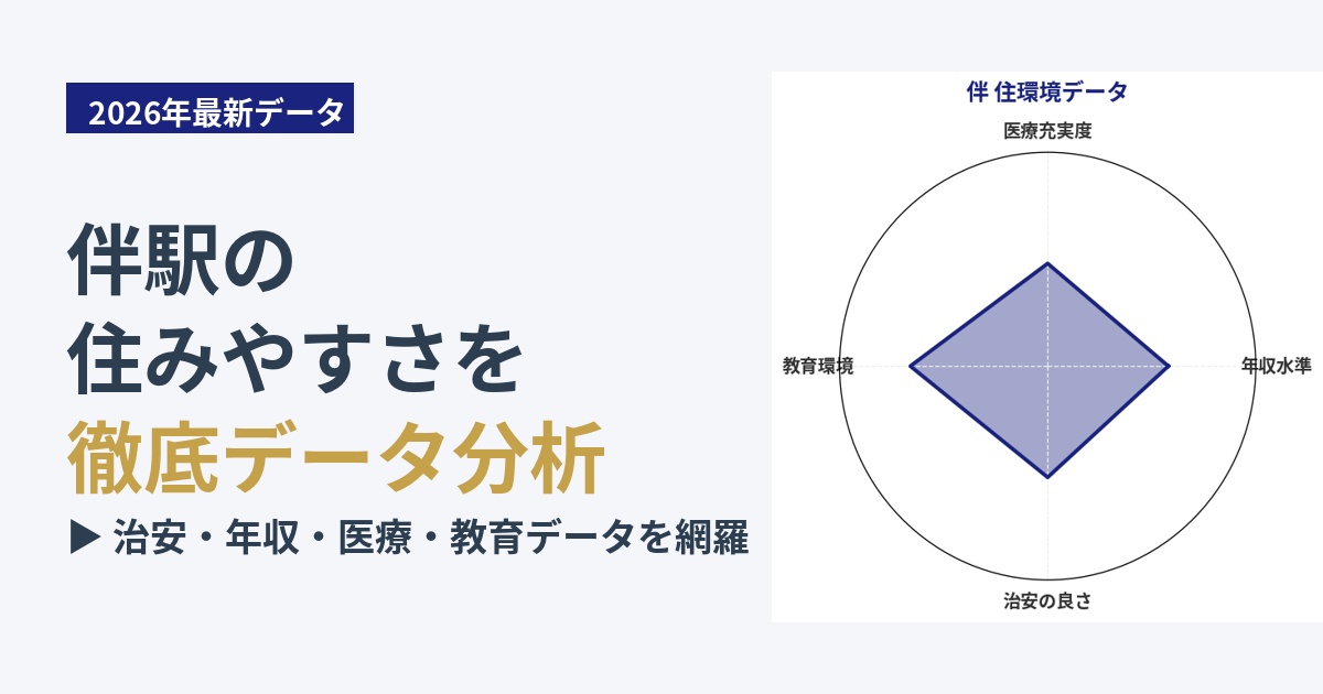 伴地区は、子育て世代にとって比較的安心感のある地域と言えます。治安スコア52点という数値は、極めて高いわけではありませんが、郊外の住宅地としての落ち着きがあり、ファミリー層が暮らしやすい環境です。公立小学校や中学校が点在しており、子どもたちが通学しやすい立地も多いです。また、大小の公園も点在しているため、子どもたちが外で遊ぶ場所にも恵まれています。ただし、夜間の外出時や、お子様だけで行動させる際には、前述の夜道の明るさや治安の傾向を踏まえ、保護者の方の注意や見守りが推奨されます。地域全体で子どもたちを見守る意識はありますが、個々の防犯意識を持つことが、より安心な子育て環境につながります。