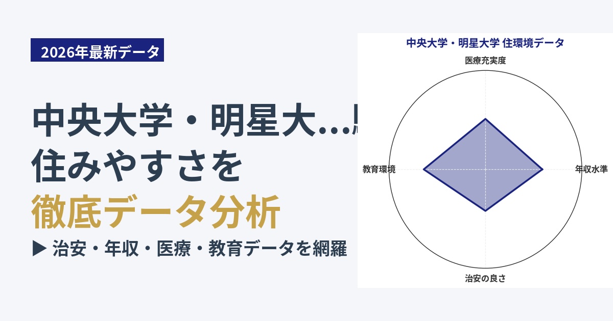 東京都八王子市の中央大学・明星大学周辺エリアは、治安スコア42点というデータに基づくと、全体的に見て平均的な治安状況にあると言えます。極端に犯罪が多い地域ではありませんが、油断は禁物です。学生街という特性上、夜間は学生の往来が多く、活気がありますが、それに伴う騒音や、まれに不審者情報が報告されることもあります。特に、自転車盗難や路上でのトラブルなど、学生を狙った軽犯罪には注意が必要です。地域住民や大学関係者による見守り活動も行われており、地域全体で防犯意識を高める努力が見られます。