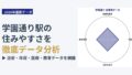 トップページ 2026.01.19 住みたい街のデータを検索 家賃相場・治安・住みやすさをA政府統計と現地の情報から徹底分析 検索 都道府県から探す 北海道・東北 北海道 青森県 岩手県 宮城県 秋田県 山形県 福島県 関東 東京都 神奈川県 埼玉県 千葉県 茨城県 栃木県 群馬県 中部 愛知県 新潟県 富山県 石川県 福井県 山梨県 長野県 岐阜県 静岡県 近畿 大阪府 兵庫県 京都府 滋賀県 奈良県 和歌山県 三重県 中国・四国 鳥取県 島根県 岡山県 広島県 山口県 徳島県 香川県 愛媛県 高知県 九州・沖縄 福岡県 佐賀県 長崎県 熊本県 大分県 宮崎県 鹿児島県 沖縄県 最新の分析データ 【2026年】香川県 高松市 沖松島駅の住みやすさは?治安・周辺施設、教育環境など暮らしに関わる情報を解説 2026.04.29 【2026年】香川県 高松市 松島二丁目駅の住みやすさは?治安・周辺施設、教育環境など暮らしに関わる情報を解説 2026.04.29 【2026年】香川県 高松市 今橋駅の住みやすさは?治安・周辺施設、教育環境など暮らしに関わる情報を解説 2026.04.29 【2026年】香川県 木田郡三木町 公文明駅の住みやすさは?治安・周辺施設、教育環境など暮らしに関わる情報を解説 2026.04.29 【2026年】香川県 木田郡三木町 井戸駅の住みやすさは?治安・周辺施設、教育環境など暮らしに関わる情報を解説 2026.04.29 【2026年】香川県 木田郡三木町 学園通り駅の住みやすさは?治安・周辺施設、教育環境など暮らしに関わる情報を解説 2026.04.29